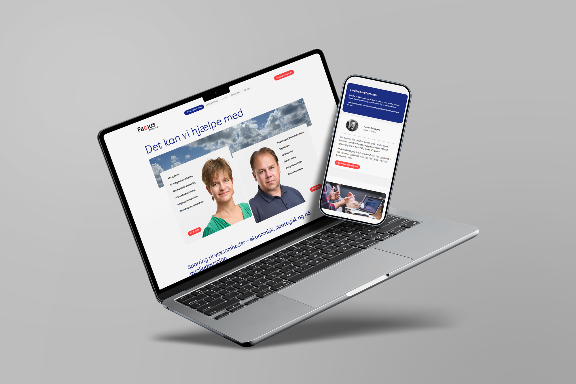 Facius Rådgivning kom til os med behovet for en moderne visuel identitet og hjemmeside, der kunne afspejle deres professionelle rådgivningsvirksomhed på en troværdig, elegant og genkendelig måde. De havde allerede et logo, men det manglede et løft og et moderne udtryk, der kunne binde deres kompetencer inden for økonomi, kommunikation og ledelse sammen i et stærkt visuelt univers.